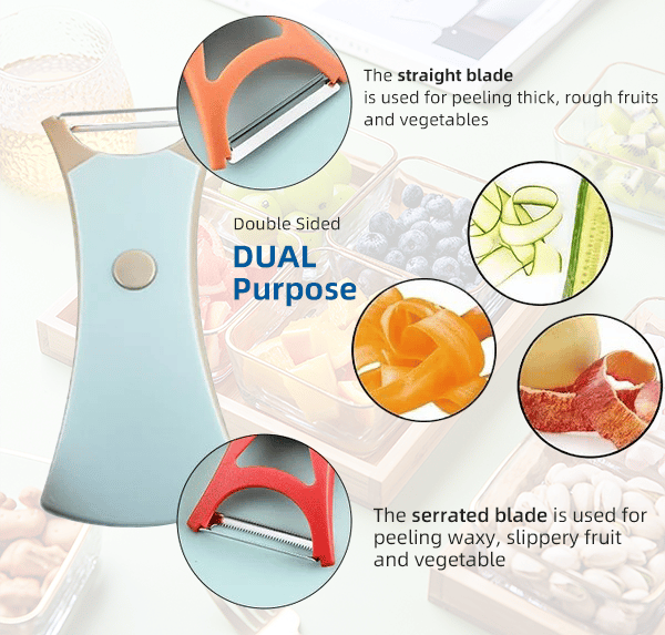 Versatility: Our 2-in-1 peeler features different functions and blades that will allow you to cut, grate or peel any fruit or vegetable.