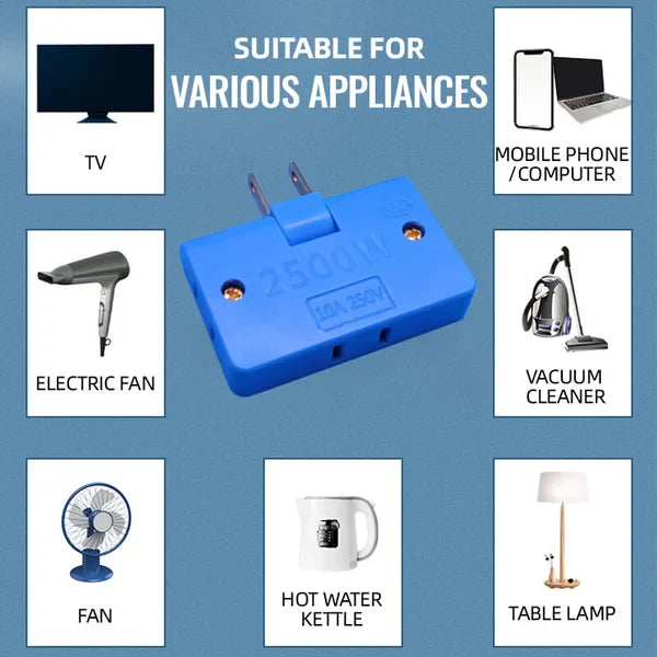 Works in all corners, Can be plugged into the two-jack in a variety of locations, easily turning three in one,Suitable for all appliances up to 2500W power.