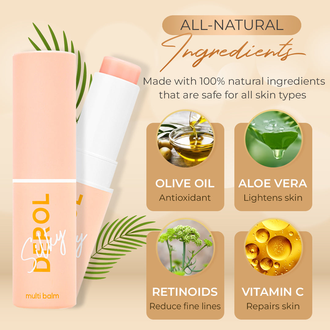 - This multi-moisturizing balm gives a natural glow to any area you apply it to. It contains vitamin B12 which gives you a naturally dewy complexion and whitening benefits. It helps in the production of new skin cells, promoting healthy, youthful-looking skin. Vitamin B12 provides additional nourishment to the skin and helps reduce the appearance of fine lines and wrinkles. It also helps improve the overall texture and tone of the skin, leaving it smooth, firm and radiant. Whether you want to moisturize your chapped lips, get that “glass skin” effect, brighten dull skin, or keep your makeup fresh and dewy, you can use this moisturizing stick anywhere, anytime.