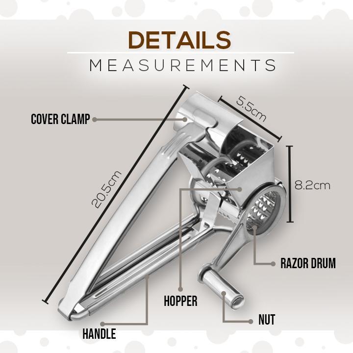 EASY TO USE: Simply insert cheese or vegetables into the hopper, squeeze the handle, and rotate the Drum Slicer handle to grate or shred. Perfect for grating Hard Cheeses like Parmesan, Chocolate, Nuts, Pistachio, Almonds, Vegetables, and more.