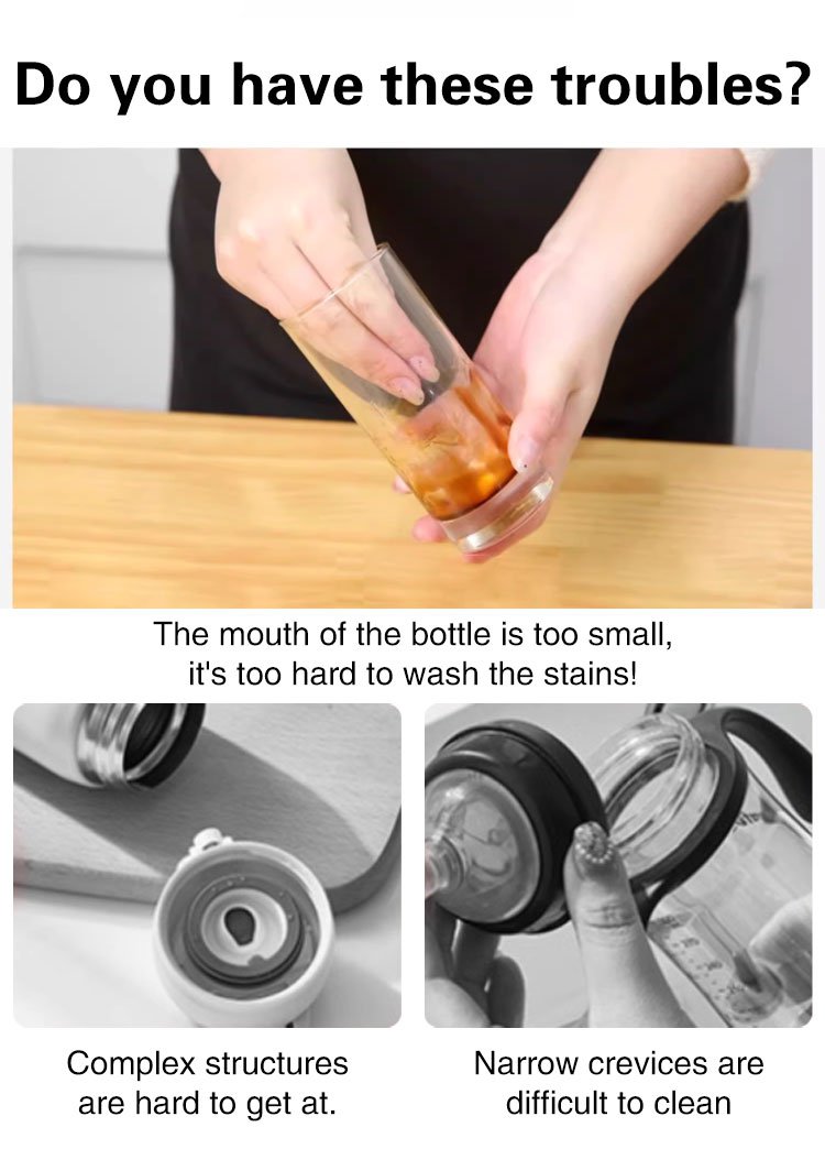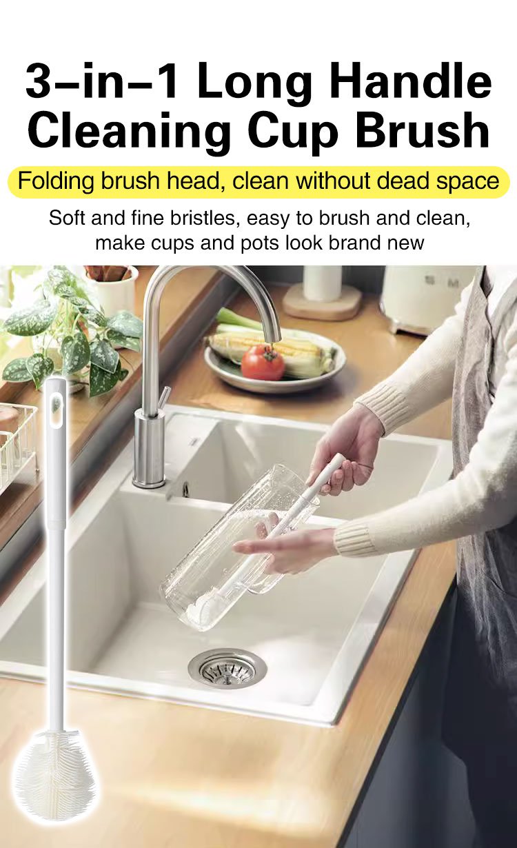 Three in one long handled cleaning cup brush